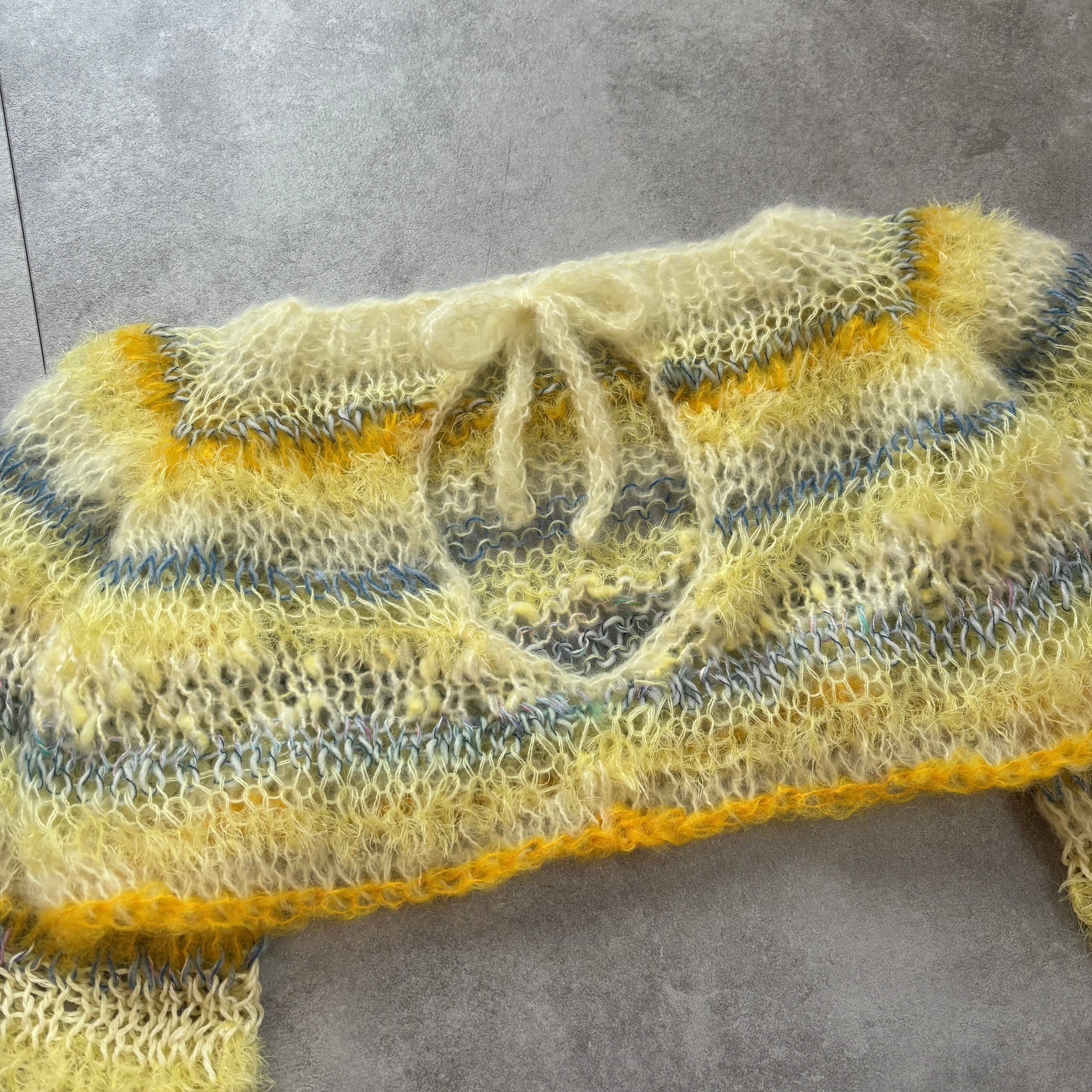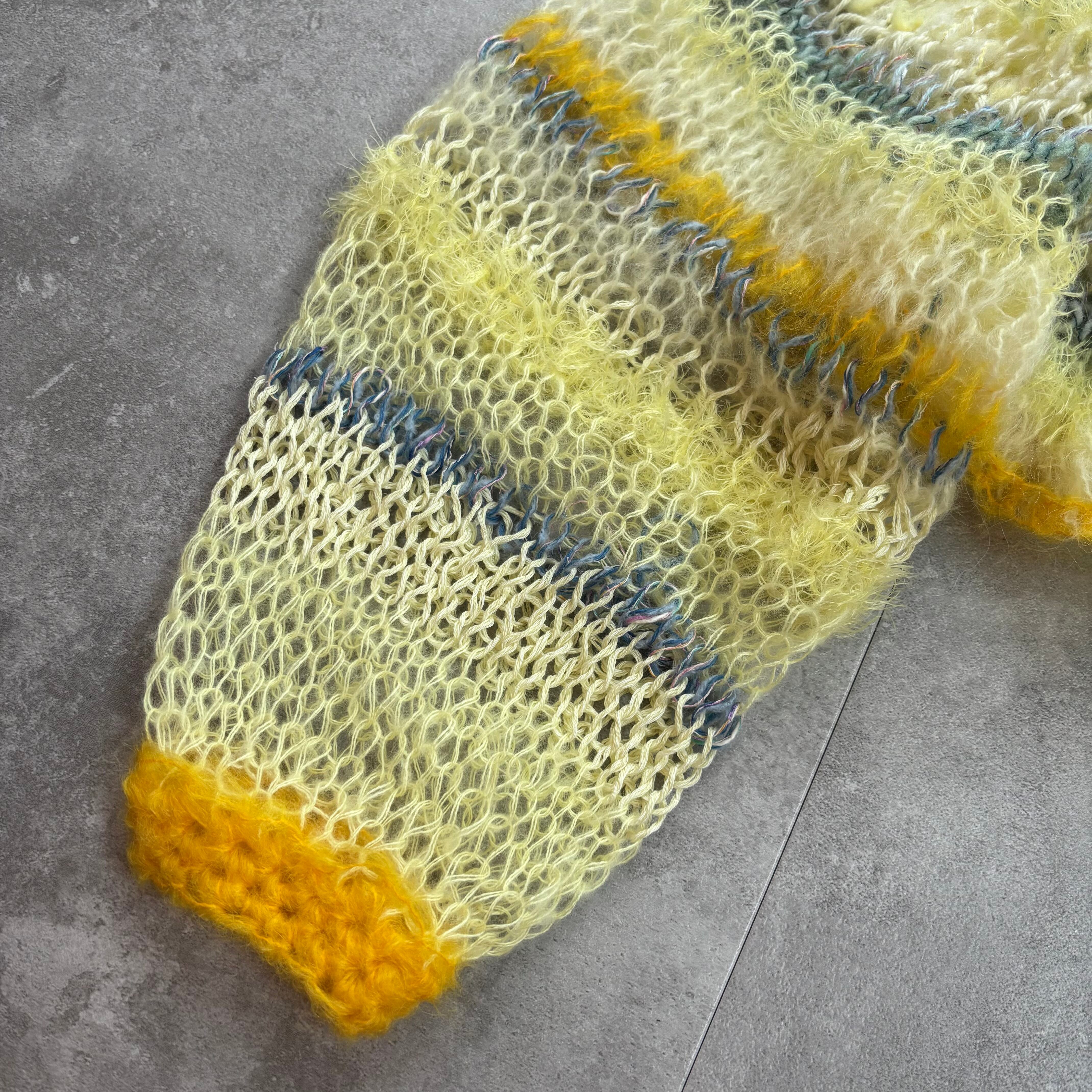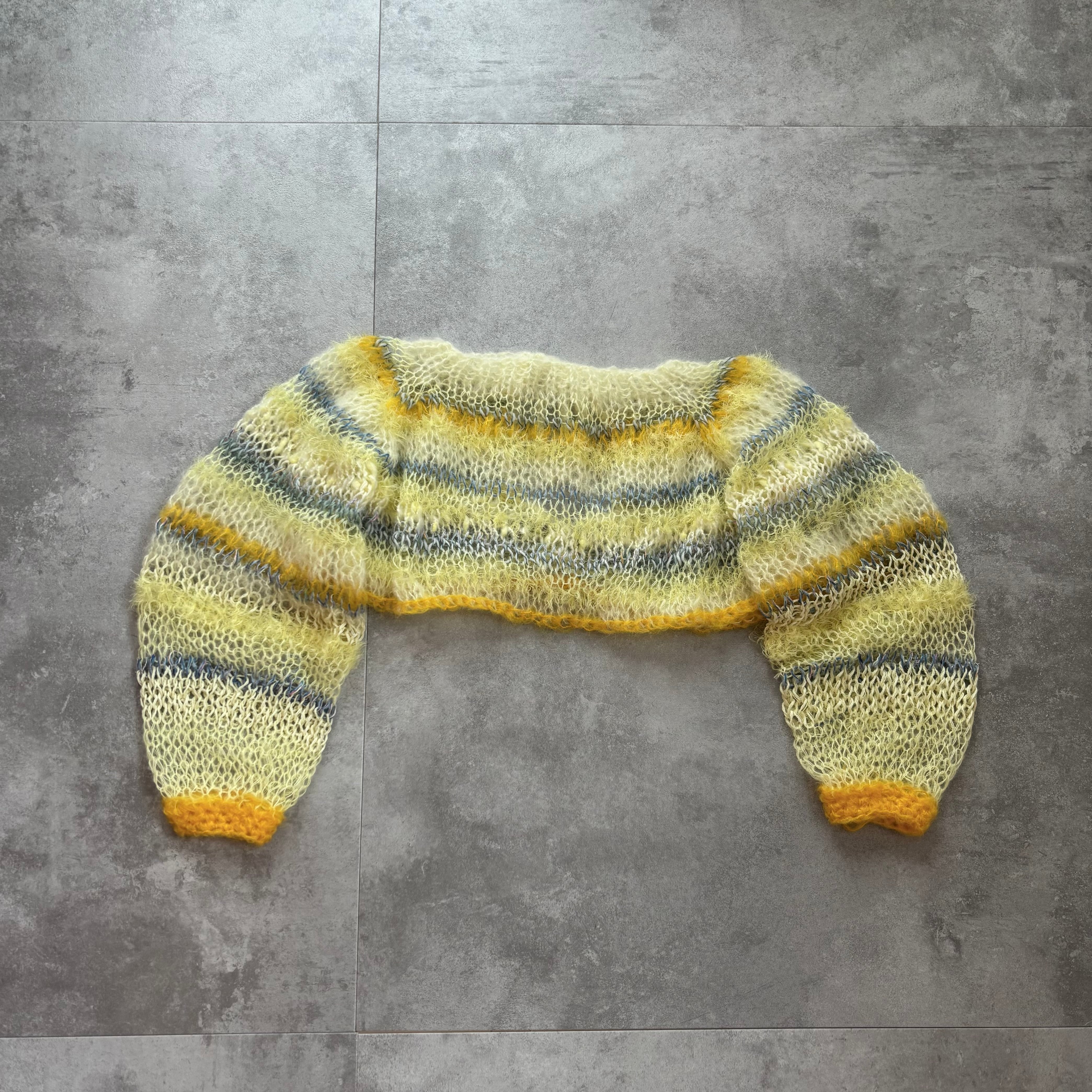 ・1つ1つ手作業で編んでおります。着用していると糸端などが出てくる場合がございますが、切らずに内側へ直していただけますと幸いです。